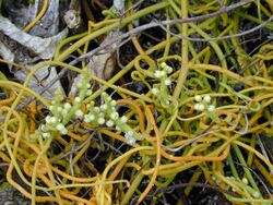 Cassytha filiformis, a plant used in African traditional medicine, contains many aporphine alkaloids and that the three main alkaloids actinodaphnin, cassythin, and dicentrin have an in vitro effect on cancer cells.[4]