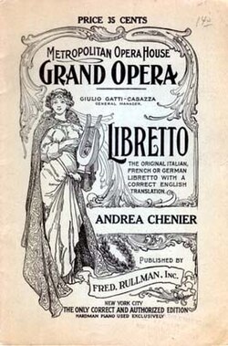 Drama is literature intended for performance.[136] The form is combined with music and dance in opera and musical theatre (see libretto). A play is a written dramatic work by a playwright that is intended for performance in a theatre; it comprises chiefly dialogue between characters. A closet drama, by contrast, is written to be read rather than to be performed; the meaning of which can be realized fully on the page.[137] Nearly all drama took verse form until comparatively recently.