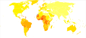 As of 2012, prostate cancer is the second-most frequently diagnosed cancer (at 15% of all male cancers)[177] and the sixth leading cause of cancer death in males worldwide.[178] In 2010, prostate cancer resulted in 256,000 deaths, up from 156,000 deaths in 1990.[179] Rates of prostate cancer vary widely across the world. Although the rates vary widely between countries, it is least common in South and East Asia, and more common in Europe, North America, Australia, and New Zealand.[180] Prostate cancer is least common among Asian men and most common among black men, with figures for white men in between.[181][182]