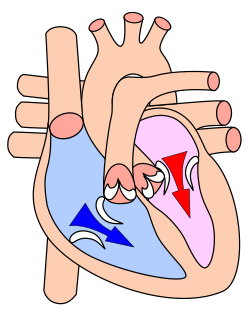 In cardiac physiology, preload is the amount of sarcomere stretch experienced by cardiac muscle cells, called cardiomyocytes, at the end of ventricular filling during diastole.[1] Preload is directly related to ventricular filling. As the relaxed ventricle fills during diastole, the walls are stretched and the length of sarcomeres increases. Sarcomere length can be approximated by the volume of the ventricle because each shape has a conserved surface-area-to-volume ratio. This is useful clinically because measuring the sarcomere length is destructive to heart tissue. It requires cutting out a piece of cardiac muscle to look at the sarcomeres under a microscope. It is currently not possible to directly measure preload in the beating heart of a living animal. Preload is estimated from end-diastolic ventricular pressure and is measured in millimeters of mercury (mmHg).