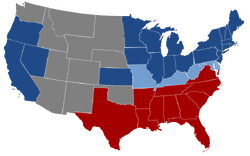 The Confederacy was formed on February 8, 1861, by seven slave states: South Carolina, Mississippi, Florida, Alabama, Georgia, Louisiana, and Texas.[8] All seven were in the Deep South region of the United States, whose economy was heavily dependent upon agriculture, especially cotton, and a plantation system that relied on slave labor.[9][10] Convinced that white supremacy and slavery were threatened by the 1860 election of Abraham Lincoln to the U.S. presidency on a platform that opposed the expansion of slavery into the western territories, the seven slave states seceded from the United States, with the loyal states becoming known as the Union during the ensuing American Civil War.[7][8][11] In the Cornerstone Speech, Confederate Vice President Alexander H. Stephens described its ideology as centrally based "upon the great truth that the negro is not equal to the white man; that slavery, subordination to the superior race, is his natural and normal condition."[12] No foreign government ever recognized the Confederacy as an independent country, although Great Britain and France granted it belligerent status.[1][13][14]