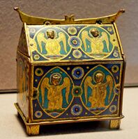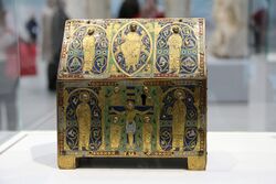 Early 13th century Limoges chasse used to hold holy oils; most were reliquaries.