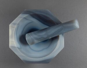 The word enamel comes from the Old High German word smelzan (to smelt) via the Old French esmail,[1] or from a Latin word smaltum, first found in a 9th-century Life of Leo IV.[2] Used as a noun, "an enamel" is usually a small decorative object coated with enamel. "Enamelled" and "enamelling" are the preferred spellings in British English, while "enameled" and "enameling" are preferred in American English.