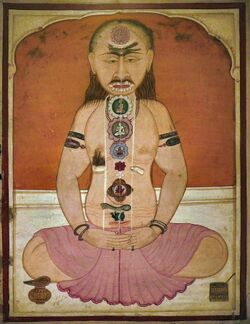 Different manuscripts offer different titles for the text, including Haṭhayogapradīpikā, Haṭhapradīpikā, Haṭhapradī, and Hath-Pradipika.[3] It was composed by Svātmārāma in the 15th century as a compilation of the earlier haṭha yoga texts. Svātmārāma incorporates older Sanskrit concepts into his synthesis. He introduces his system as a preparatory stage for physical purification before higher meditation or Raja Yoga.[4]