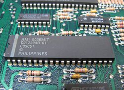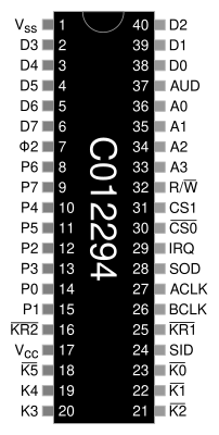 POKEY, an acronym for Pot Keyboard Integrated Circuit,[1] is a digital I/O chip designed by Doug Neubauer at Atari, Inc.[2] for the Atari 8-bit family of home computers. It was first released with the Atari 400 and Atari 800 in 1979 and is included in all later models and the Atari 5200 console. POKEY combines functions for reading paddle controllers (potentiometers) and computer keyboards as well as sound generation and a source for pseudorandom numbers. It produces four voices of distinctive square wave audio, either as clear tones or modified with distortion settings.[3] Neubauer also developed the Atari 8-bit killer application Star Raiders which makes use of POKEY features.