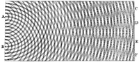 The wave theory predicted that light waves could interfere with each other like sound waves (as noted around 1800 by Thomas Young). Young showed by means of a diffraction experiment that light behaved as waves. He also proposed that different colours were caused by different wavelengths of light and explained colour vision in terms of three-coloured receptors in the eye. Another supporter of the wave theory was Leonhard Euler. He argued in Nova theoria lucis et colorum (1746) that diffraction could more easily be explained by a wave theory. In 1816 André-Marie Ampère gave Augustin-Jean Fresnel an idea that the polarization of light can be explained by the wave theory if light were a transverse wave.[37]