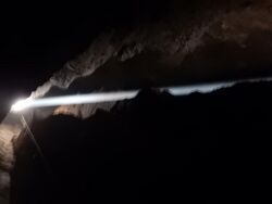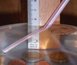 Light exerts physical pressure on objects in its path, a phenomenon which can be deduced by Maxwell's equations, but can be more easily explained by the particle nature of light: photons strike and transfer their momentum. Light pressure is equal to the power of the light beam divided by c, the speed of light. Due to the magnitude of c, the effect of light pressure is negligible for everyday objects. For example, a one-milliwatt laser pointer exerts a force of about 3.3 piconewtons on the object being illuminated; thus, one could lift a U.S. penny with laser pointers, but doing so would require about 30 billion 1-mW laser pointers.[22] However, in nanometre-scale applications such as nanoelectromechanical systems (NEMS), the effect of light pressure is more significant and exploiting light pressure to drive NEMS mechanisms and to flip nanometre-scale physical switches in integrated circuits is an active area of research.[23] At larger scales, light pressure can cause asteroids to spin faster,[24] acting on their irregular shapes as on the vanes of a windmill. The possibility of making solar sails that would accelerate spaceships in space is also under investigation.[25][26]