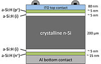 The Sanyo HIT (Heterojunction with Intrinsic Thin layer) solar cell is composed of a mono thin crystalline silicon wafer surrounded by ultra-thin amorphous silicon layers.[28]