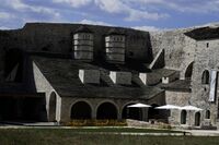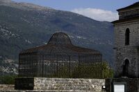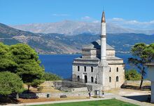 At the south-eastern edge of the town on a rocky peninsula of Lake Pamvotis, the castle was the administrative heart of the Despotate of Epirus, and the Ottoman vilayet. The castle was in constant use until the late Ottoman period and the fortifications underwent several modifications throughout the centuries. The most extensive alterations where conducted during the rule of Ali Pasha and were completed in 1815.[81] Several monuments such as the Byzantine baths, the Ottoman baths, the Ottoman library, and the Soufari Sarai are found within the castle's walls.[82] There are two citadels in the castle. The south-eastern citadel, which bears the name Its Kale (Ιτς Καλέ, from Turkish Iç Kale, 'inner fortress')[citation needed] is where the Fethiye Mosque, the tomb of Ali Pasha, and the Byzantine Museum are located.[83] The north-eastern citadel is dominated by the Aslan Pasha Mosque and also contains a few other monuments dating from the Ottoman period.[83] The old Jewish Synagogue of Ioannina is within the walls of the castle and is one of the oldest and largest buildings of its type surviving in Greece.[84][83]