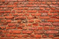 Bricks are laid in courses bonded with mortar, a combination of Portland cement, lime and sand.[46] A wall that is one brick thick will include stretcher bricks with their long, narrow side exposed and header bricks crossing from side to side. There are various brickwork "bonds", or patterns of stretchers and headers, including the English, Dutch and Flemish bonds.[47]