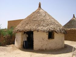 There are innumerable examples of mud brick or adobe building around the world. The walled city of Shibam in Yemen, designated a World Heritage Site in 1982, is known for its ten-story unreinforced mud-brick buildings.[61] The Djinguereber Mosque of Timbuktu, Mali, was first built at the start of the 14th century AD (8th century AH) from round mud bricks and a stone-mud mixture, and was rebuilt several times afterwards, steadily growing in size.[62] Further south in Mali, the Great Mosque of Djenné, a dramatic example of Sahel mudbrick architecture. was built in 1907, based on the design of an earlier Great Mosque first built on the site in 1280. Mudbrick requires maintenance, and the fundamentalist ruler Seku Amadu had let the previous mosque collapse.[63]
