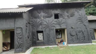 Art on an adobe building at Shantiniketan University, Bolpur, West Bengal