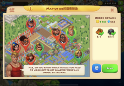 Airports require three groups of the same number and type of items, two or three of each, to be ready within 15 hours. Each delivery of a kind of item is rewarded with a batch of gold coins. Each completed group will be rewarded with more, and completing three groups will result in banknotes and gems.