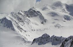 The saddle Mittelbergjoch (lower edge, left from middle) in Tyrolia in Austria. It is frequently crossed by mountaineers on the way up to the Wildspitze (3.768 m, right upper corner). In the diagram top right, the saddle is comparable to the leftmost drawn type.