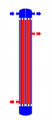 The figure above illustrates the parallel and counter-flow flow directions of the fluid exchanger.