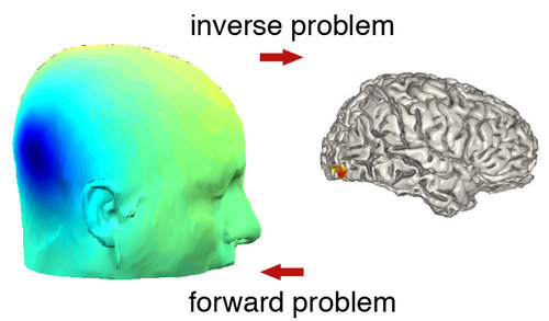 From Scholarpedia Neuroelectromagnetic source imaging (NSI) is the scientific field devoted to modeling and estimating the spatiotemporal dynamics of neuronal currents throughout the brain that generate the electric potentials and magnetic fields measured with noninvasive or invasive electromagnetic (EM) recording technologies (Ha93; Ba01; Ha05). Unlike the images produced by fMRI , which are only indirectly related to neuroelectrical activity through neurovascular coupling (e.g., the BOLD signal), the current source density or activity images that NSI techniques generate are direct estimates of electrical activity in neuronal populations. In the past few decades, researchers have developed better source localization techniques that are robust to noise and that are well informed by anatomy, neurophysiology, magnetic resonance imaging (MRI), and realistic volume conduction physics (Io90; Ge95; Fu99; Gr01; Vr01; Li02; Wo03). State-of-the-art algorithms can localize many simultaneously active sources and even determine their variable spatial extents and single-trial dynamics.
