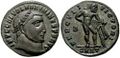 Maximinus II and Hercules with club and lionskin (Roman, 313 CE)