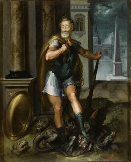 Henry IV of France, as Hercules vanquishing the Lernaean Hydra (i.e. the Catholic League), by Toussaint Dubreuil, c. 1600. Louvre Museum