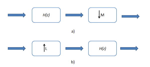 Decimation and interpolation are necessary steps to create multidimensional multirate systems. In the one dimensional system, decimation and interpolation can be seen in the figure.