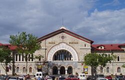 Moldova has a history of winemaking dating back to at least 3,000 BCE, and as the capital city, Chișinău hosts the yearly national wine festival every October.[9][10] Though the city's buildings were badly damaged during the Second World War and earthquakes, there remains a rich architectural heritage, especially in the form of Socialist realism and Brutalist architecture. The city's central railway station boasts a Russian-Imperial architectural style, and maintains direct rail links to Romania. The Swiss-Italian-Russian architect Alexander Bernardazzi designed many of the city's most impressive buildings, including the Chișinău City Hall, Church of Saint Theodore, and the Church of Saint Panteleimon. The city hosts the National Museum of Fine Arts, Moldova State University, Brancusi Gallery, the National Museum of History of Moldova with over 236,000 exhibits, and bustling markets in the north of the city, including the house where Alexander Pushkin once resided while in exile from Alexander I of Russia, and which has now been turned into a museum. The city's Nativity Cathedral, located at the centre of the city and constructed in the 1830s, has been described as a "masterpiece" of Neoclassical architecture.[11]