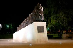On 22 April 1993, the city inaugurated the Monument to the Victims of Jewish Ghettos, a public monument centring on a bronze statue of the Biblical prophet Moses, which serves as a symbol of remembrance to the thousands of Jews who perished during the holocaust. The monument was designed by architect Simeon Shoihet and sculptor Naum Epelbaum. It stands on Ierusalim Street, marking the site of the main entrance to the Chisinau ghetto, which was established in the lower part of the city in July 1941, shortly after the German and Romanian troops occupied the area.[33]