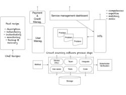 Level 2: teams of people (< 10), well-defined systems, medium large, medium time span (3 to 4 months), adaptive development processes with intelligent feedback in a blackboard architecture. At this level, a crowdsourcing website may support adaptive development process and even concurrent development processes with intelligent feedback with the blackboard architecture; intelligent analysis of coders, software products, and comments; multi-phase software testing and evaluation; Big Data analytics, automated wrapping software services into SaaS (Software-as-a-Service), annotate with ontology, cross reference to DBpedia, and Wikipedia; automated analysis and classification of software services; ontology annotation and reasoning such as linking those service with compatible input/output.