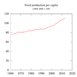 Although food shortages have been warned as a consequence of overpopulation, according to the Food and Agriculture Organization, global food production exceeds increasing demand from global population growth.[23] Food insecurity in some regions is attributable to the globally unequal distribution of food supplies.[23] Some proponents of overpopulation[who?] warn expansion of agricultural production to meet population growth is likely to have a substantial impact on the environment, and have expressed concern at usable land area becoming limited.[96][97][98]
