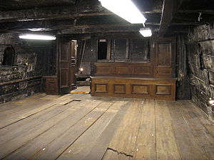On a warship, it was a privileged area, separate from the rest of the ship, for the exclusive use of the captain. In large warships, the cabin was subdivided into day and night cabins (bedrooms) by movable panels, called bulk-heads, that could be removed in time of battle to leave the cabin clear for the gunners to use the stern chasers several of which were usually stationed in the cabin.