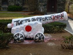 During World War II, Tufts College was one of 131 colleges and universities nationally that took part in the V-12 Navy College Training Program which offered students a path to a Navy commission.[27]
