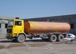 Bowser also describes a fuel tanker used to deliver fuel to aircraft at airports or airfields.[2] The term also describes refuelling boats that supply seaplanes, army fuel tankers used for combat resupply, and vehicles that fill heavy construction equipment such as hydraulic excavators and bulldozers. Even aircraft have been described as "flying fuel bowsers" when configured to ferry fuel to support a forward operation.[3]