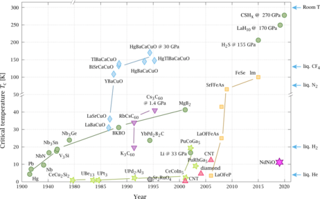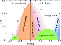 From 1986, many cuprate superconductors were identified, and can be put into three groups on a phase diagram critical temperature vs. oxygen hole content and copper hole content: