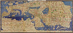A 12th century map made by geographer Muhammad al-Idrisi. Note this image is flipped upside down, from our point of view.