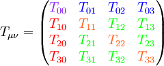 The stress-energy tensor, being a tensor of rank two in four-dimensional spacetime, has sixteen components that can be written as a 4 × 4 matrix.