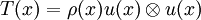 indicates a tensor product. The tensor product of two vectors is a tensor of rank two, so the stress-energy tensor must be a tensor of rank two. In an arbitrary coordinate frame