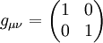Now we can write the metric tensor for the Euclidean plane in Cartesian coordinates in the form of a 2 × 2 matrix:
