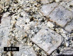 The matrix of an igneous rock consists of finer-grained, often microscopic, crystals in which larger crystals, called phenocrysts, are embedded. This porphyritic texture is indicative of multi-stage cooling of magma. For example, porphyritic andesite will have large phenocrysts of plagioclase in a fine-grained matrix. Also in South Africa , diamonds are often mined from a matrix of weathered clay-like rock (kimberlite) called "yellow ground".