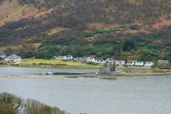 Arran has several villages, mainly around the shoreline. Brodick (Old Norse: 'broad bay') is the site of the ferry terminal, several hotels, and the majority of shops. Brodick Castle is a seat of the Dukes of Hamilton. Lamlash, however, is the largest village on the island and in 2001 had a population of 1,010 compared to 621 for Brodick.[14] Other villages include Lochranza and Catacol in the north, Corrie in the north east, Blackwaterfoot and Kilmory in the south west, Kildonan in the south and Whiting Bay in the south east.