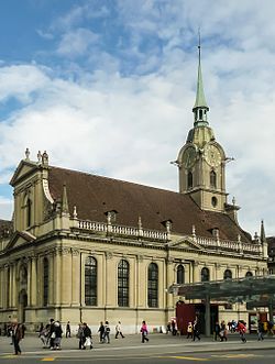 From Handwiki Bern (de-CH), or Berne (fr),[note 1] is the de facto[note 2] capital of Switzerland, referred to as the "federal city".[note 3][1] With a population of about 146,000 (as of 2024[update]), Bern is the fifth-most populous city in Switzerland, behind Zürich, Geneva, Basel and Lausanne.[2] The Bern agglomeration, which includes 36 municipalities, had a population of 406,900 in 2014.[3] The metropolitan area had a population of 660,000 in 2000.[4]