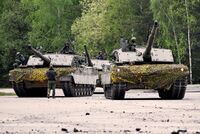 Main battle tanks are a key component of modern armies.[3] Modern MBTs seldom operate alone, as they are organized into armoured units that include the support of infantry, who may accompany the tanks in infantry fighting vehicles. They are also often supported by surveillance or ground-attack aircraft.[4] The average weight of MBTs varies from country to country. The average weight of Western MBTs is usually greater than that of Russian or Chinese MBTs.