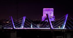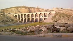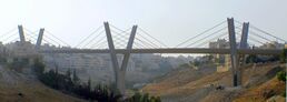 Amman has an extensive road network. Eight roundabout "circles", which formerly marked neighborhoods, are used as landmarks.[35] The road network includes many bridges and tunnels due to the mountainous nature of the terrain. A leading example is the Abdoun Bridge, which spans Wadi Abdoun and connects the 4th Circle to Abdoun Circle. It is considered one of Amman's many landmarks and is the first curved suspended bridge to be built in the country.[35]