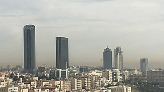 Zahran district in west Amman is the location of the Jordan Gate Towers, the first high-rise towers in the city. It is a high-class commercial and residential project under construction, close to the 6th Circle. The towers are one of the best-known skyscrapers in the city.[118] The southern tower will host a Hilton Hotel, while the northern tower will host offices. The towers are separated by a podium that is planned to become a mall. It also contains bars, swimming pools and conference halls. The developers are Bahrain's Gulf Finance House, the Kuwait Investment and Finance Company (KIFC). The project is expected to be opened by 2025.[118]
