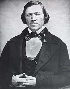 Brigham "Bring ‘em" Young was a Mormon spiritual leader and American politician who took over the main branch of the Church of Latter Day Saints after the death of Joseph Smith, Jr. in Carthage, Illinois. After becoming the second President and Prophet, Young led the Mormons to the American West and founded Salt Lake City, which would become the capital of Utah and the de facto capital of the Church of Latter-Day Saints. His force of personality kept the Mormons together in the face of adversity, and kept them from going the way of many other religious movements born in the same era.