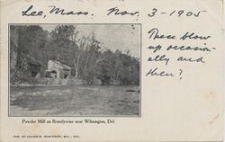 DuPont was founded in 1802 by Éleuthère Irénée du Pont, using capital raised in France and gunpowder machinery imported from France. He started the company at the Eleutherian Mills, on the Brandywine Creek, near Wilmington, Delaware, two years after du Pont and his family left France to escape the French Revolution and religious persecution against Huguenot Protestants. The company began as a manufacturer of gunpowder, as du Pont noticed that the industry in North America was lagging behind Europe. The company grew quickly, and by the mid-19th century had become the largest supplier of gunpowder to the United States military, supplying one-third to one-half the powder used by the Union Army during the American Civil War.[5] The Eleutherian Mills site is now a museum and a National Historic Landmark.