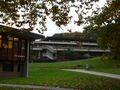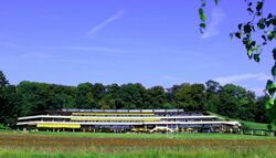 The university campus is made up of individual buildings with a park and arboretum in between. The university library also serves as eating hall and is centrally located. The view from the library across the sports fields to the lake of Geneva and the French and Swiss Alps. On a clear day, Mont Blanc can be seen.