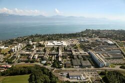 Together with the École polytechnique fédérale de Lausanne (EPFL) the university forms a vast campus at the shores of Lake Geneva.