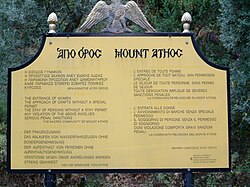 Sign forbidding women to enter the "Sacred Community of Mount AthocAthos".