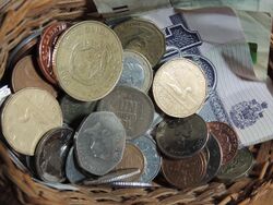 A currency basket is a portfolio of selected currencies with different weightings.[1] A currency basket is commonly used by investors to minimize the risk of currency fluctuations[2] and also governments when setting the market value of a country's currency.[3]