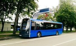 Dancer Bus is an electric bus designed and produced by Vėjo Projektai UAB in Klaipėda, Lithuania. The electric bus is manufactured of composite materials, including recycled PET bottles. The vehicle is 12 metres (39 ft) long, equipped ZF electric drive. In-wheel traction motors are currently in development.[1] Fully charged bus can ride a distance of up to 90 kilometres (56 mi).[2] The lithium-titanate battery fully charges in less than 10 minutes. The capacity is 93 passengers with 32 seats and one space for a wheelchair.[3] The bus is certified in the European Union.[4] In April 2020, two buses were purchased by the Klaipėda City Municipality to be used for public transportation.[3]