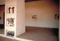 After visiting Abomey in 1993, a mission from the Getty Conservation Institute launched a campaign for the restoration of the bas-reliefs that once decorated the palaces. During this campaign, which lasted four years, fifty of the fifty-six bas-reliefs originally decorating the walls of one palace were located and members of the Benin Cultural Heritage staff were trained in the planning and practical aspects of the conservation programme.[3]