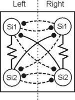 The central pattern generator responsible for rhythmic swimming consists of at least two types of bilaterally symmetric interneurons, swim interneuron 1 (Si1) and swim interneuron 2 (Si2) (Thompson and Watson, 2005). Si1 is located in the cerebral ganglion and Si2 is located in the pedal ganglion. Ipsilateral swim interneurons are electrically coupled and work together, whereas contralateral swim interneurons are inhibitory, creating a classic half-center oscillator. Efferent swim neurons are located in the pedal ganglia and control the rhythmic contractions of the body wall (Watson et al., 2002).
